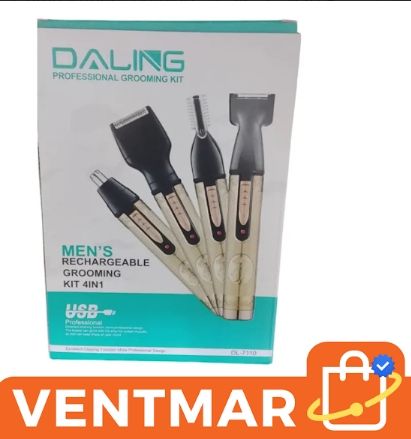 Este kit grooming masculino 4 en 1 recargable por USB permite mantener barba, nariz, patillas y detalles faciales de forma práctica y segura con un solo equipo compacto.